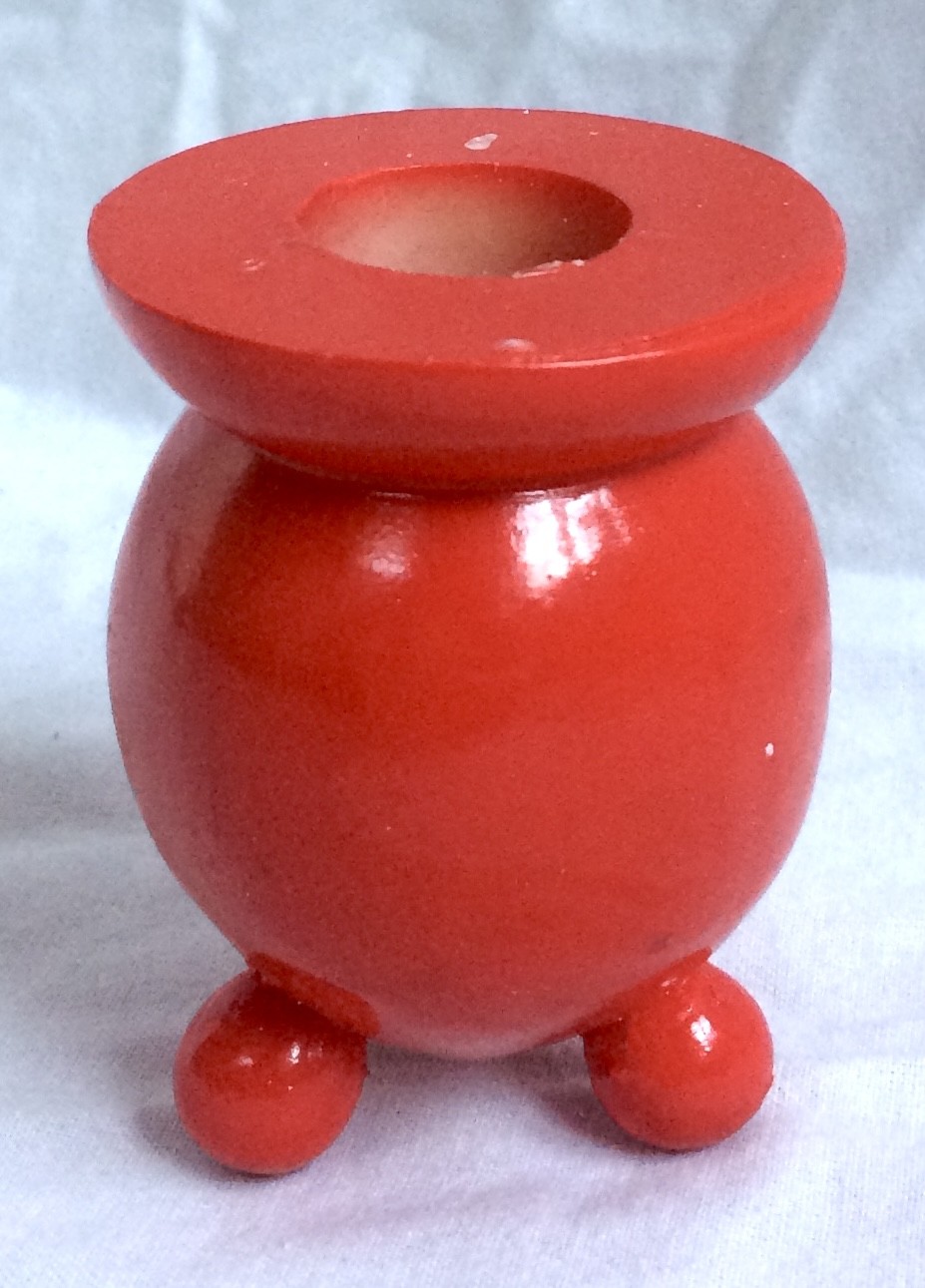 Gammel Julestage - Rød Kuglelysestage - Motiv Nr. 2 - Malet Træ - 7 cm.