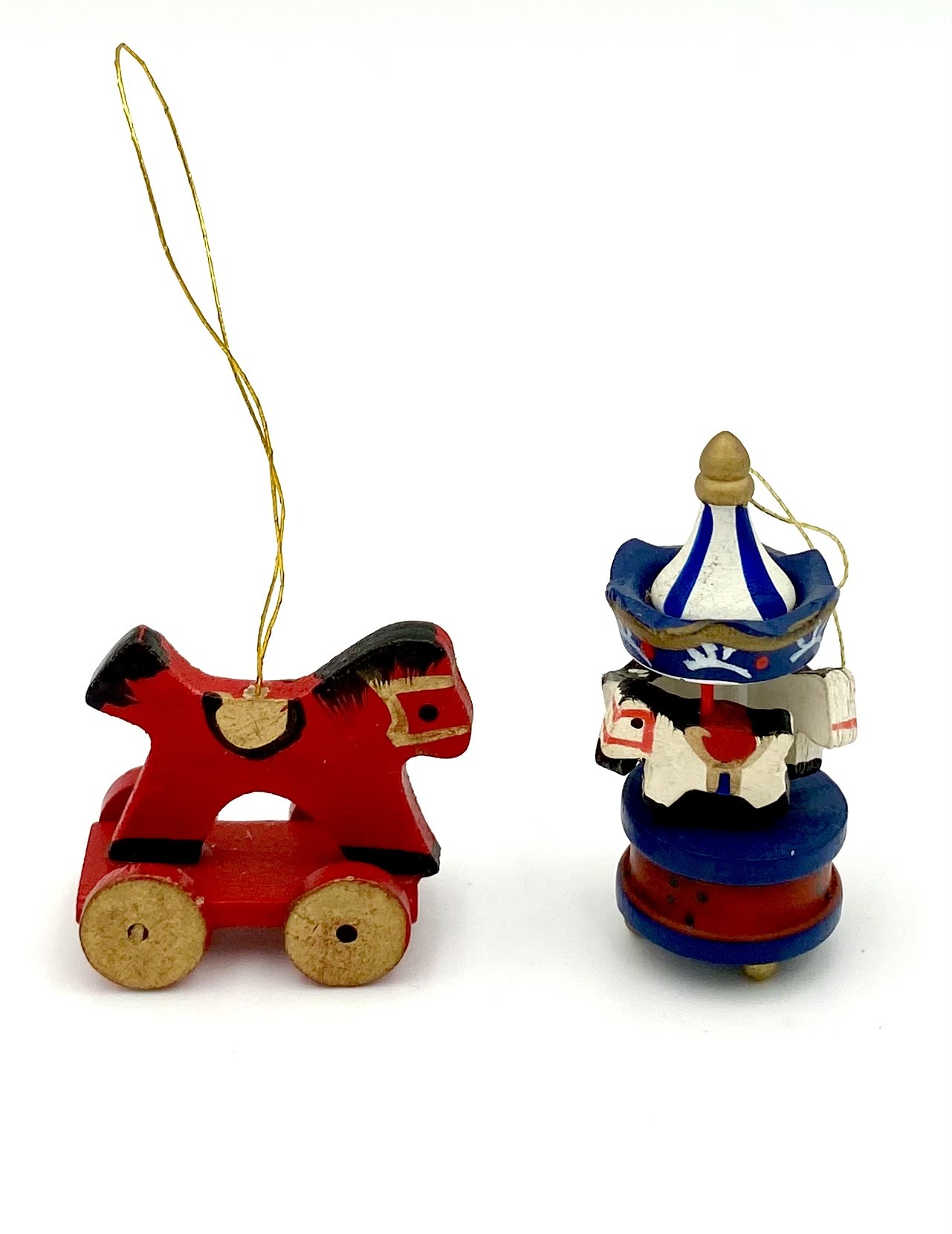 Retro Julepynt - Juleophæng - Tivoli-Karruseller - Malet Træ - Daells Varehus - Sæt Af 2