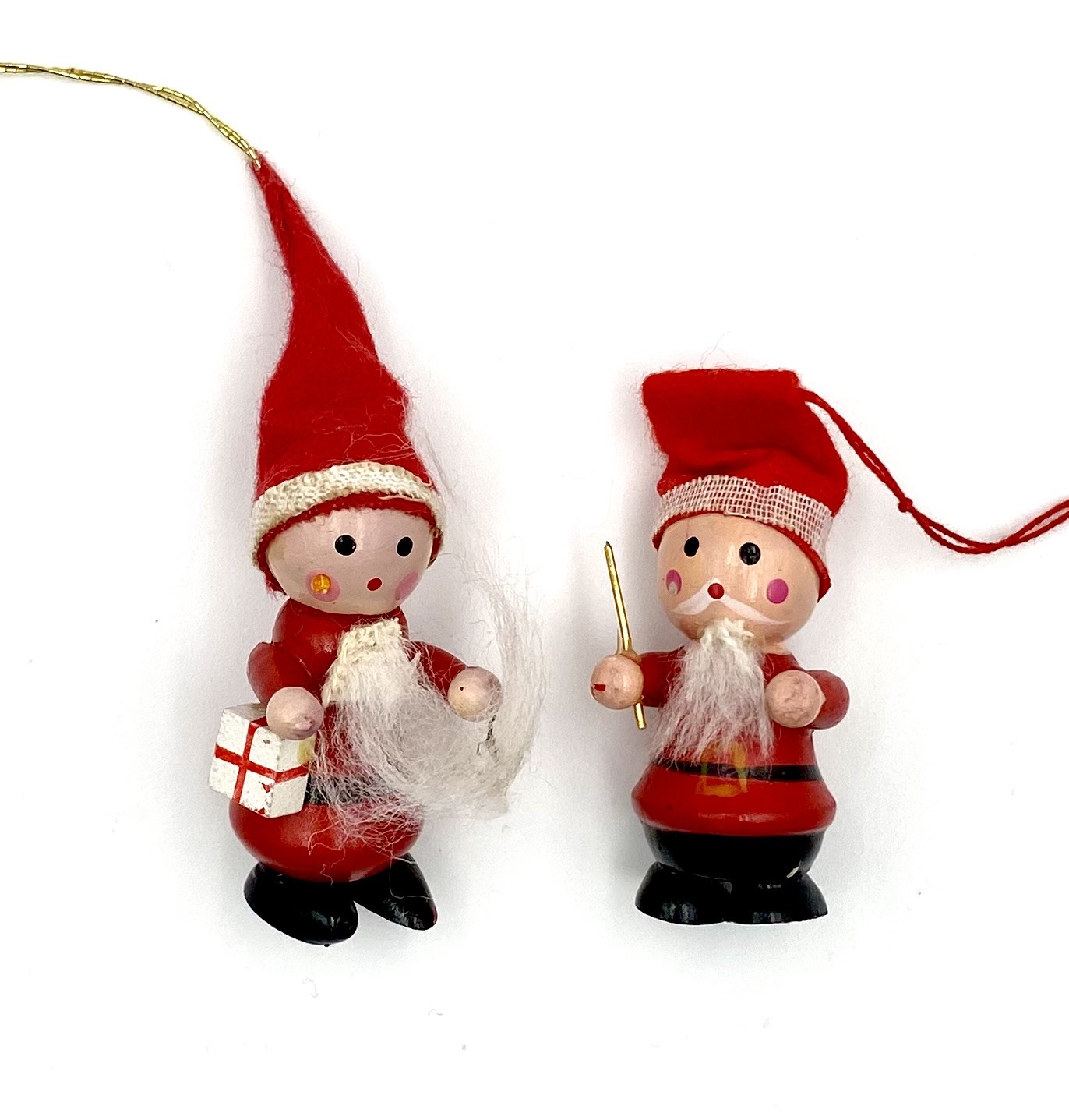 Retro juleophæng i form af nisser fra Daells Varehus. Figurerne er udført i malet træ.