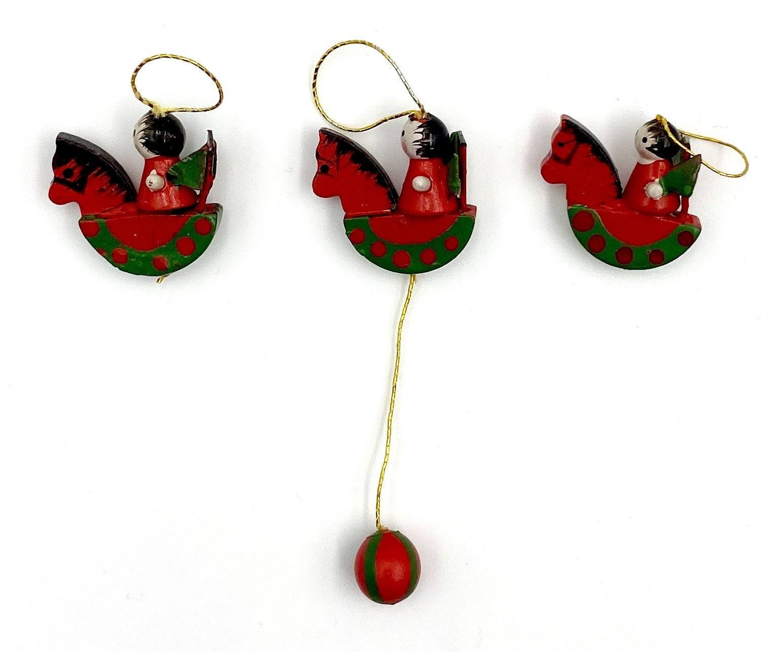 Retro Julepynt - Juleophæng - Engle På Gyngehest - Malet Træ - Daells Varehus - Sæt Af 3