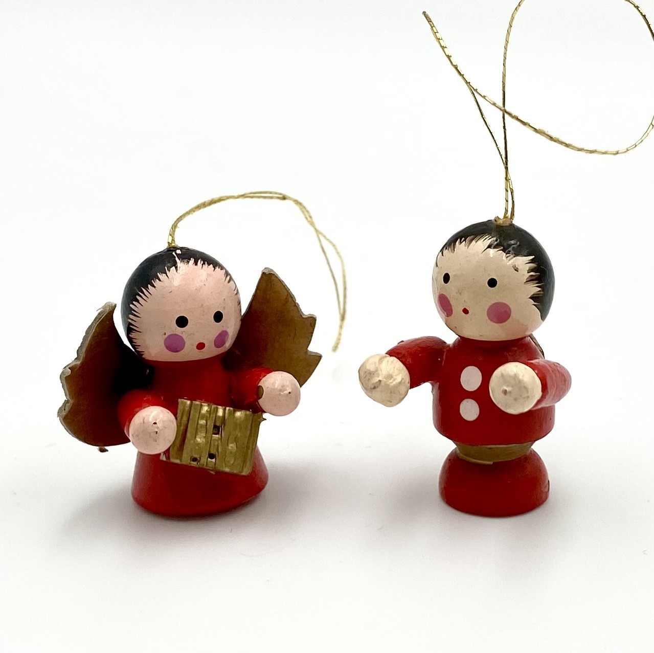 Retro juleophæng i form af engle fra Daells Varehus. Figurerne er udført i malet træ.