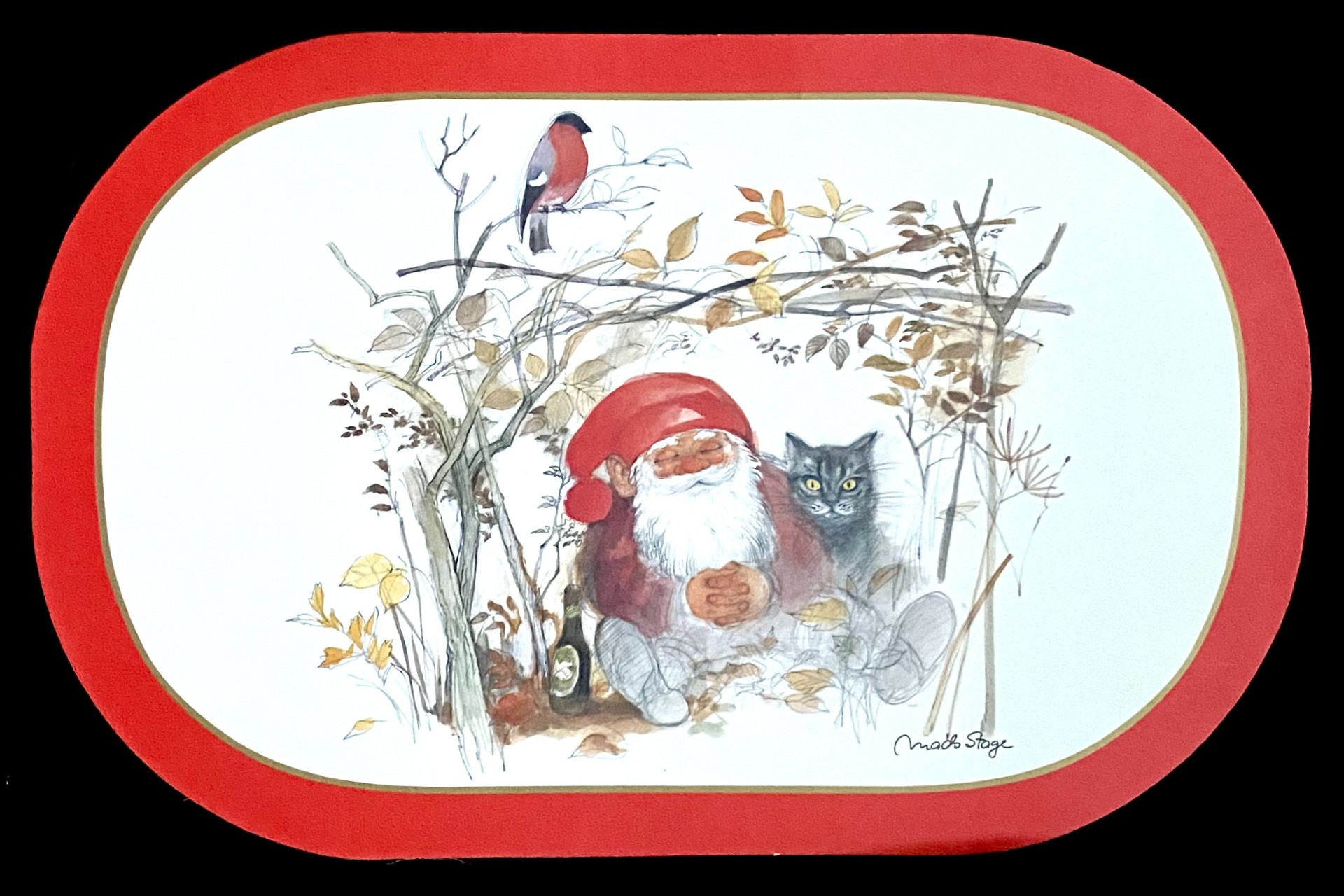 Mads Stage jule-dækkeserviet i kraftigt karton.