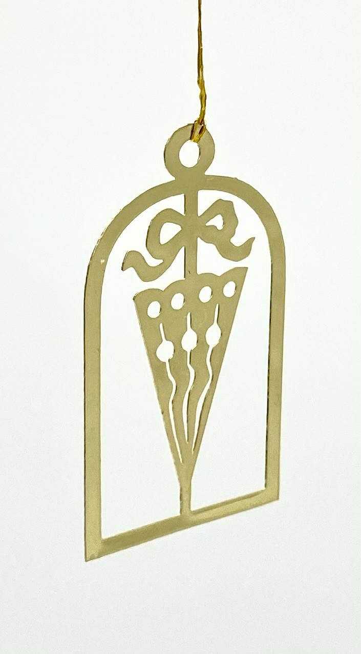 Golden Christmas juleornament i forgyldt metal. Ornamentet er yderst velegnet til at hænge på juletræet pga. den lette vægt og passende størrelse.