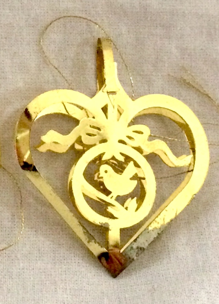 Golden Christmas juleornament i forgyldt metal i form af julehjerte fra Royal Copenhagen. Ornamentet er yderst velegnet til at hænge på juletræet pga. den lette vægt og passende størrelse.