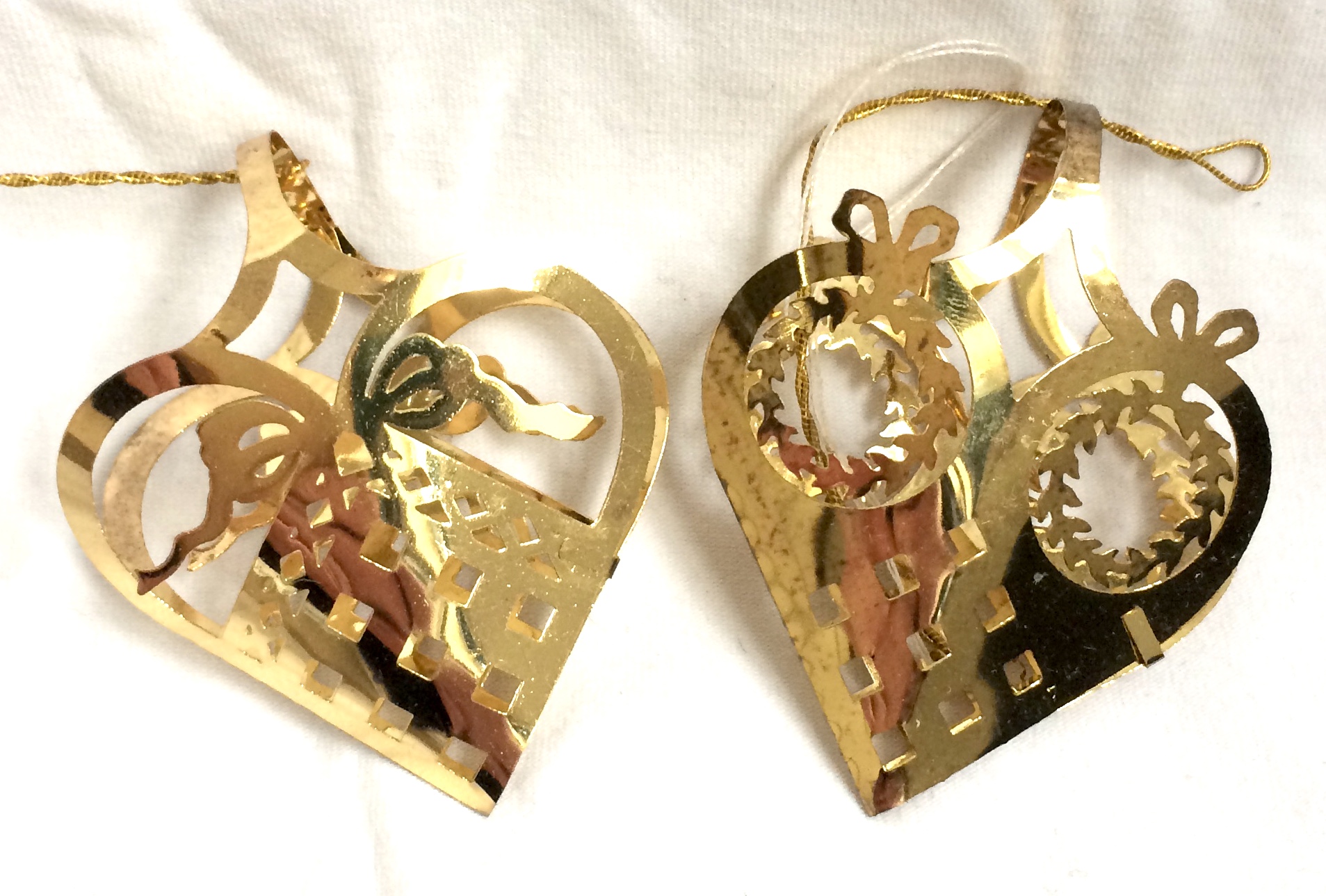 Golden Christmas juleornamenter i forgyldt metal i form af julehjerter fra Royal Copenhagen. Ornamenterne er yderst velegnede til at hænge på juletræet pga. den lette vægt og passende størrelse.
