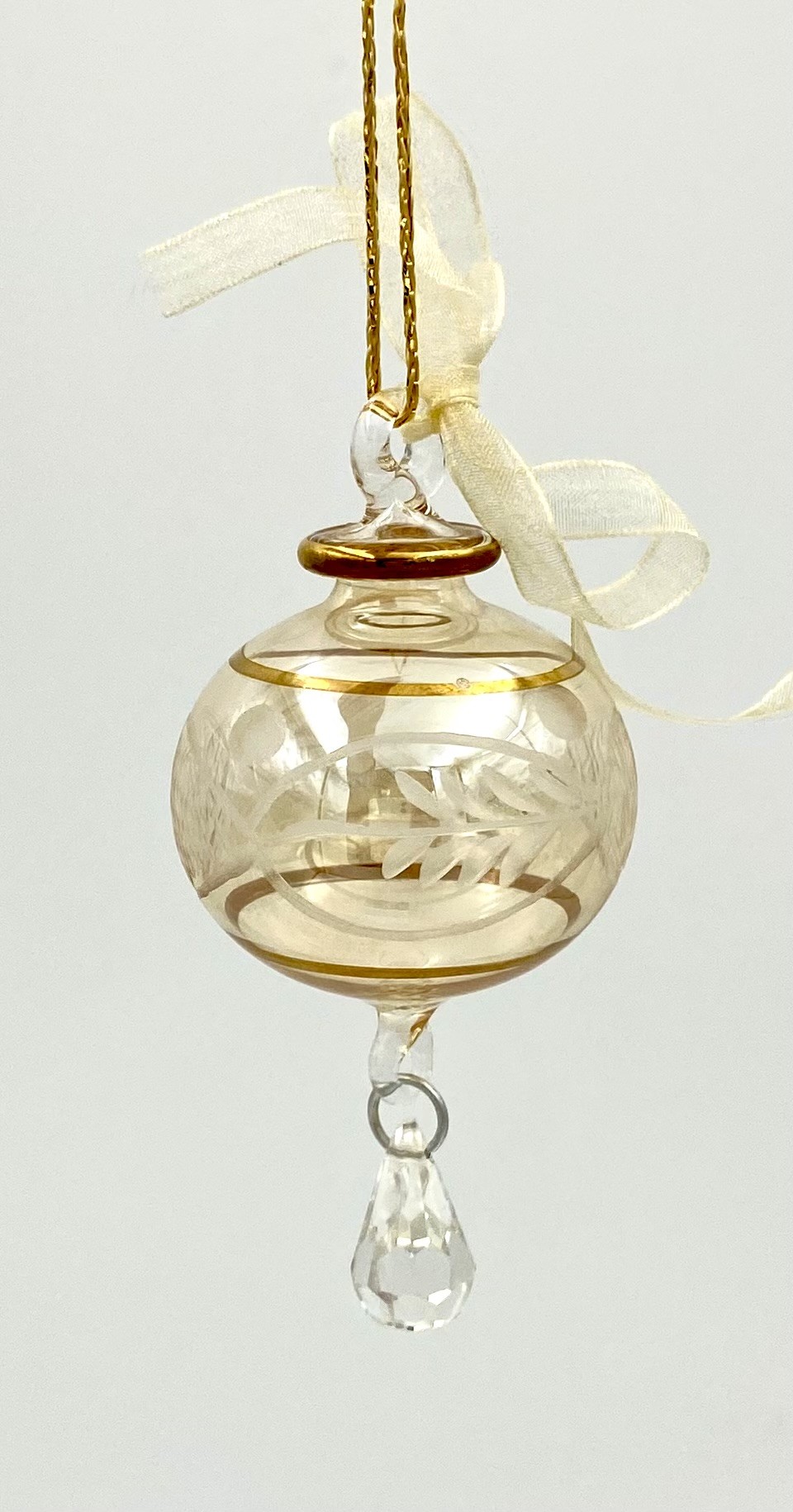 Lene Bjerre røgfarvet glaskugle med guldtryk & slibnings-mønster.