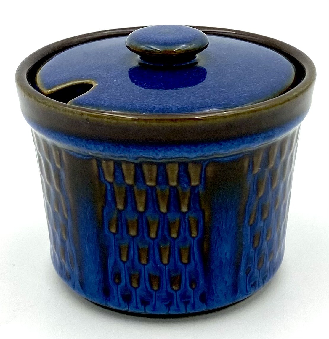 "Granit" sukkerskål med låg i blåglaseret stentøj fra Søholm Keramik - designet af Maria Philippi.
