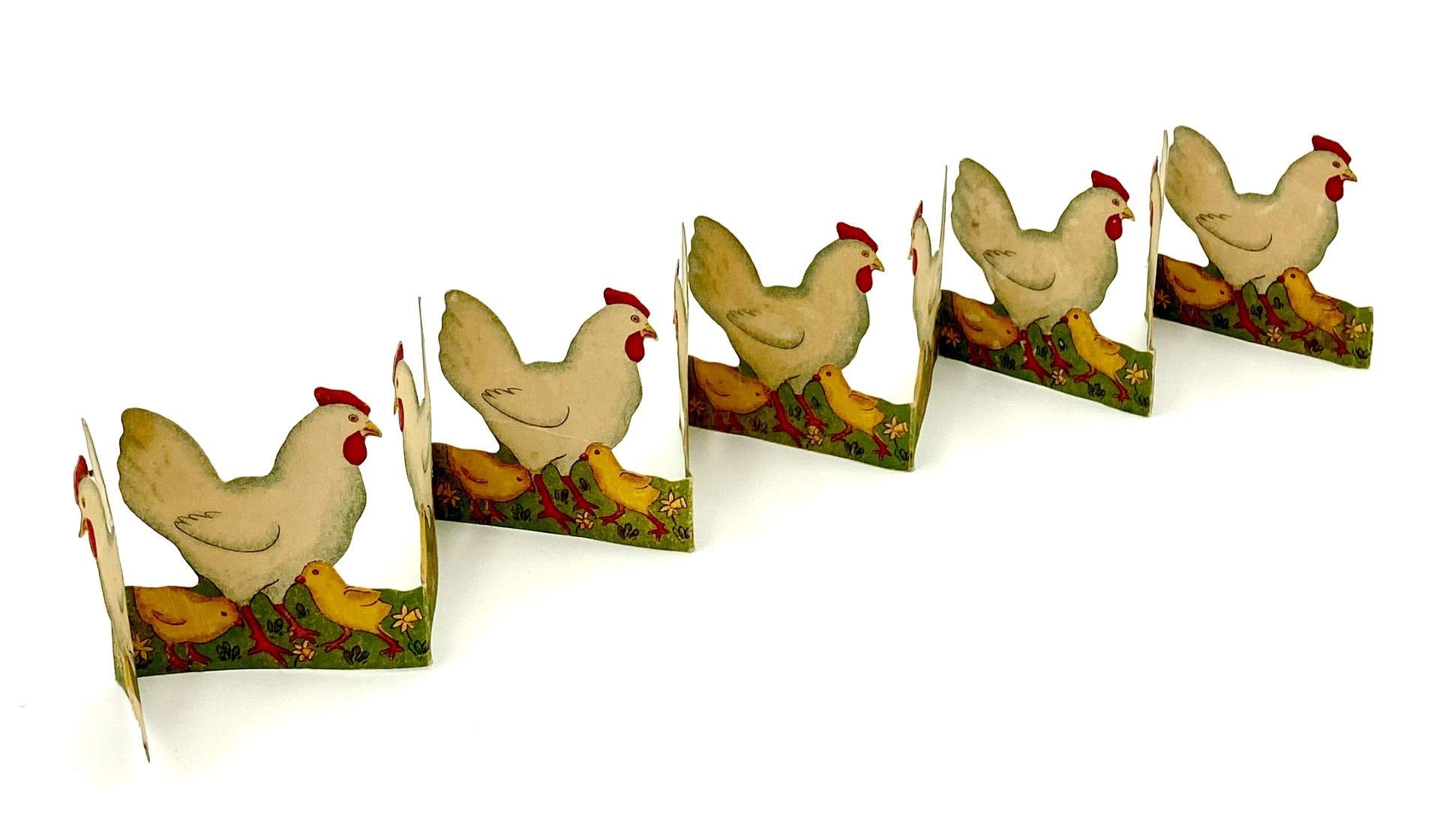Retro kylling-borddekoration i karton fra 1950'erne-1960'erne.