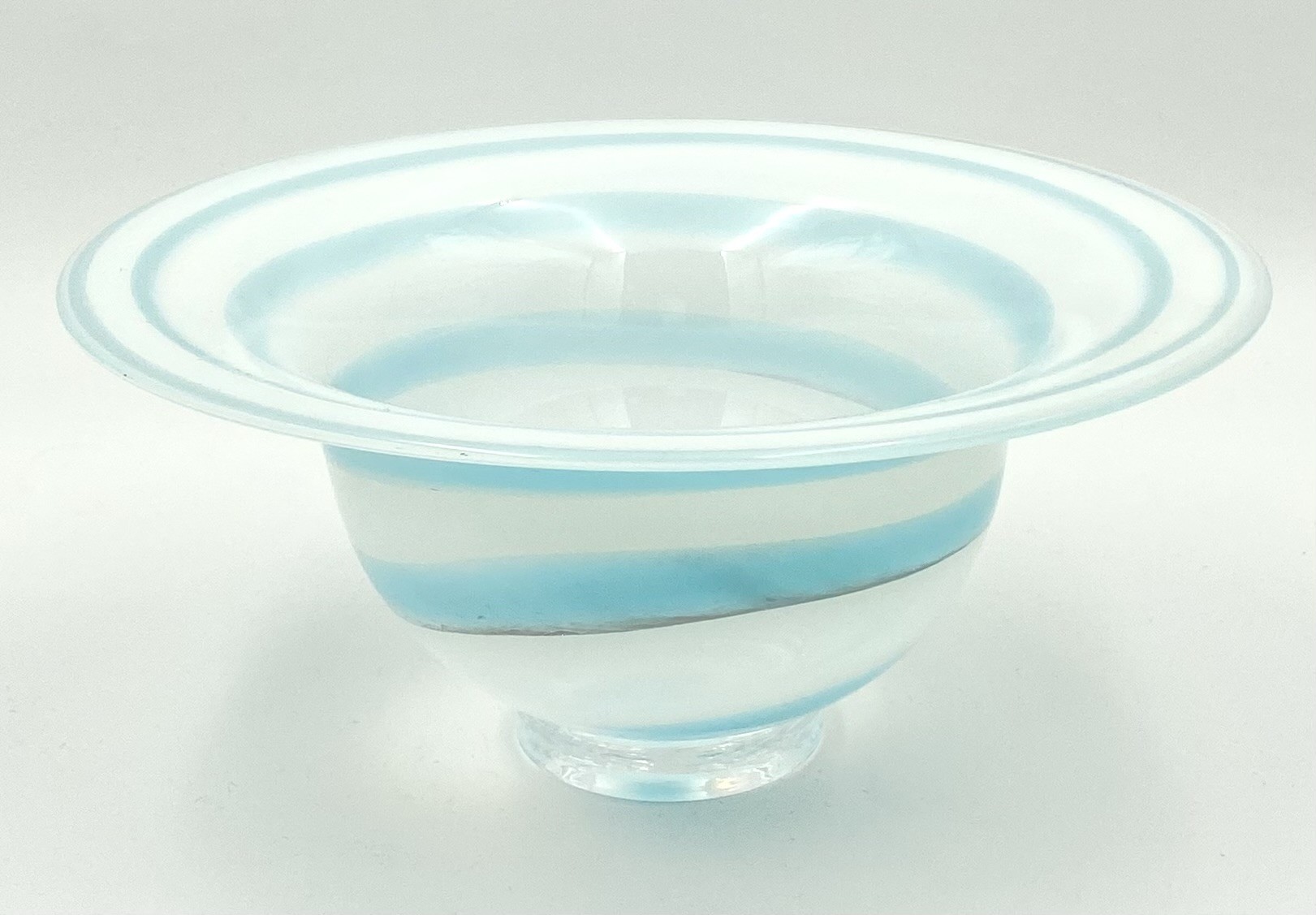 Skandinavisk Bordskål - Mundblæst Glas - Turkise & Hvide Striber - 23 cm.