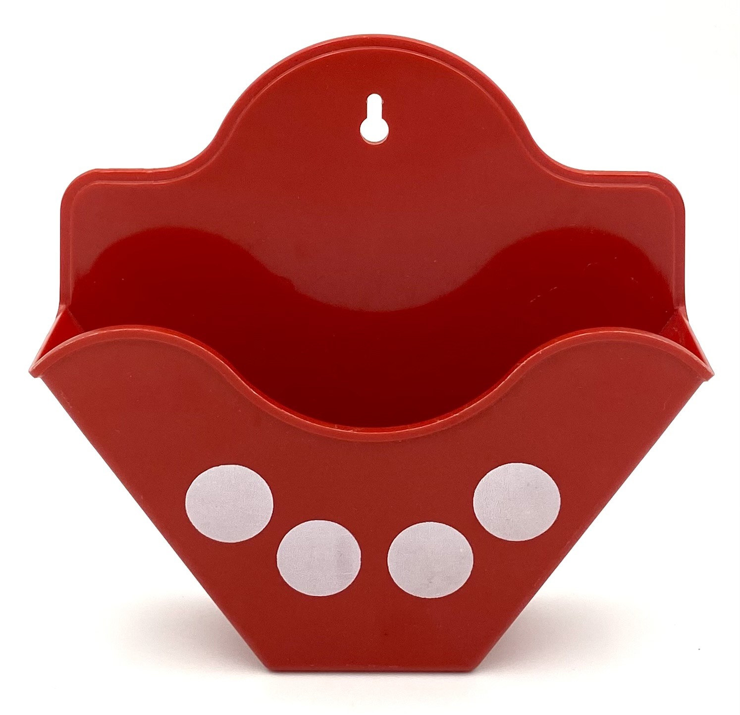Rød kaffefilterholder med hvide prikker i melamin.