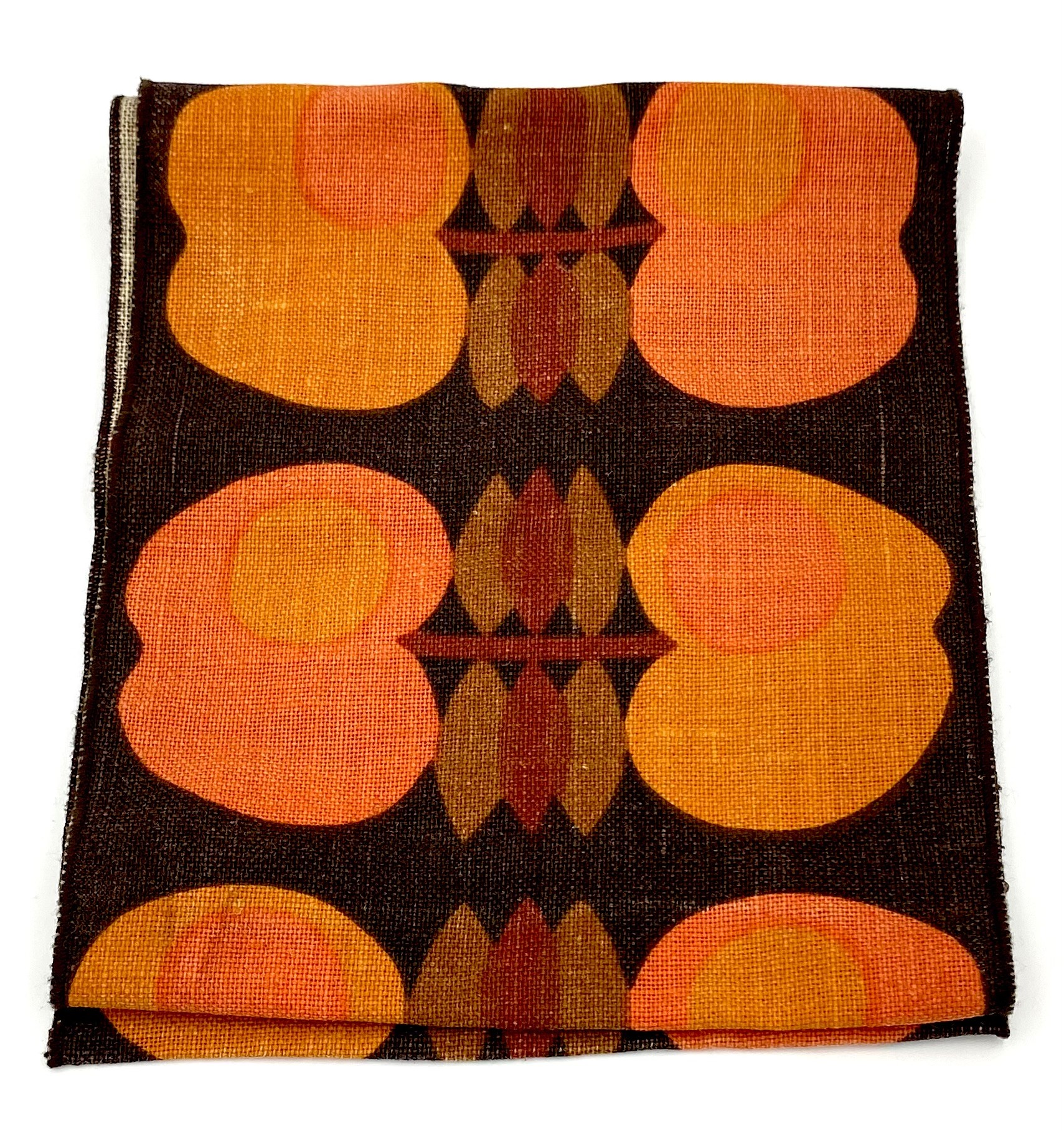 Retro bordløber i kraftigt brunt stof med motiv af orange æbler fra Södahl.