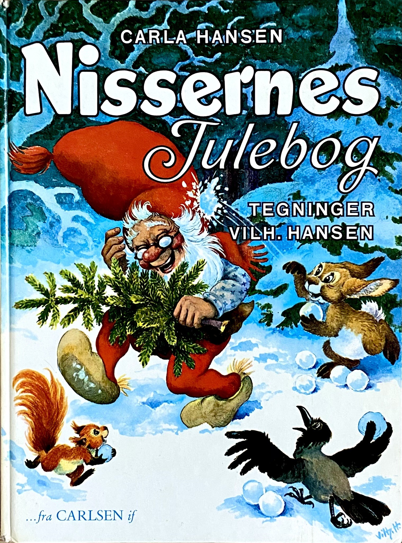 Den berømte julebog "Nissernes Julebog" skrevet af Carla Hansen & illustreret af Vilhelm Hansen. Denne udgave blev første gang udgivet i 1961.