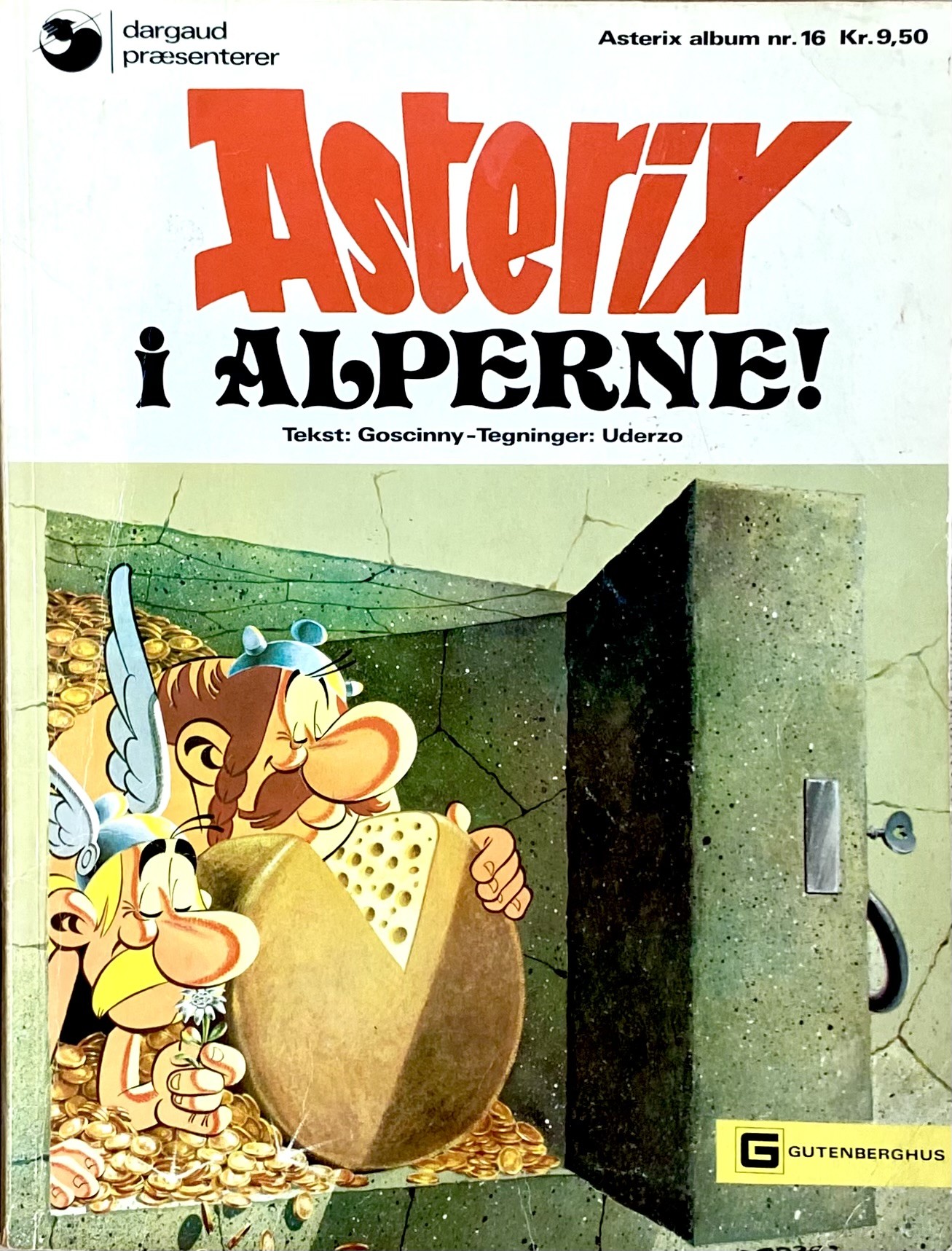 "Asterix" tegneserie-album med titlen "Asterix I Alperne" skrevet af René Goscinny & tegnet af Albert Uderzo. Dette eksemplar blev udgivet i år 1975 & er oversat af Per Då. Albummet er i farver.