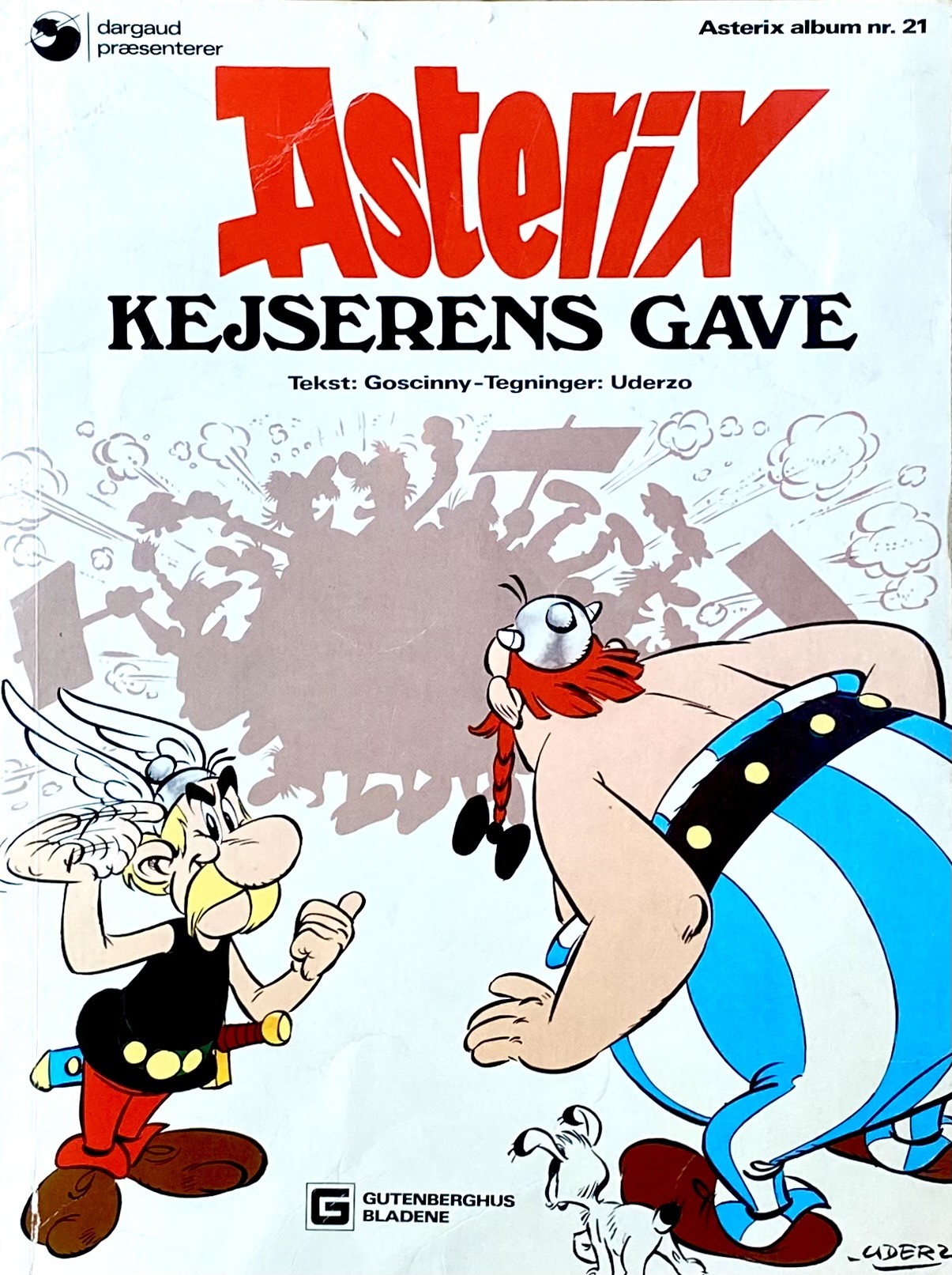 "Asterix" tegneserie-album med titlen "Kejserens Gave" skrevet af René Goscinny & tegnet af Albert Uderzo. Dette eksemplar blev udgivet i år 1977 & er oversat af Per Då. Albummet er i farver.