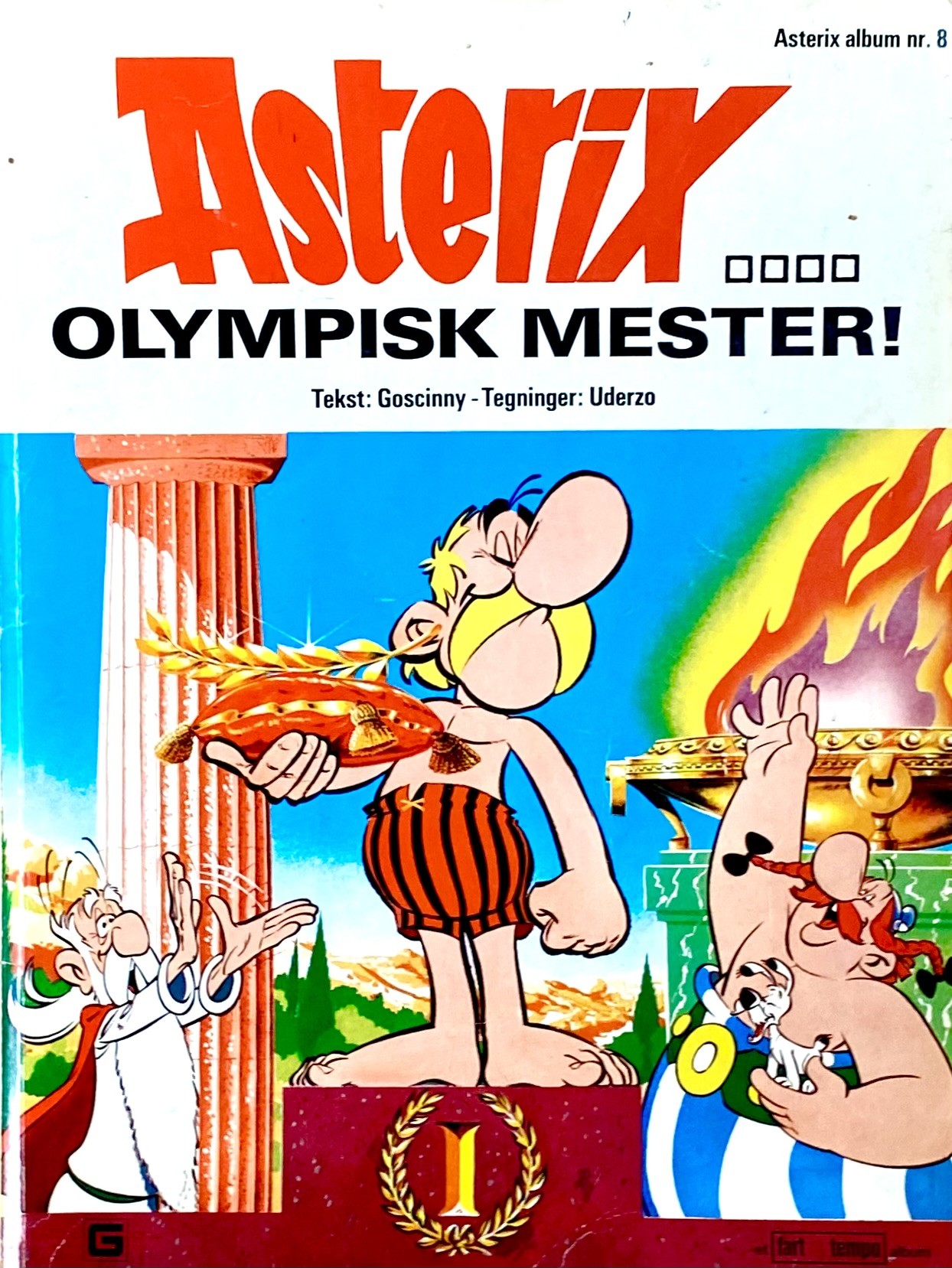 "Asterix" tegneserie-album med titlen "Olympisk Mester" skrevet af René Goscinny & tegnet af Albert Uderzo. Dette eksemplar blev udgivet i år 1972 & er oversat af Per Då. Albummet er i farver.