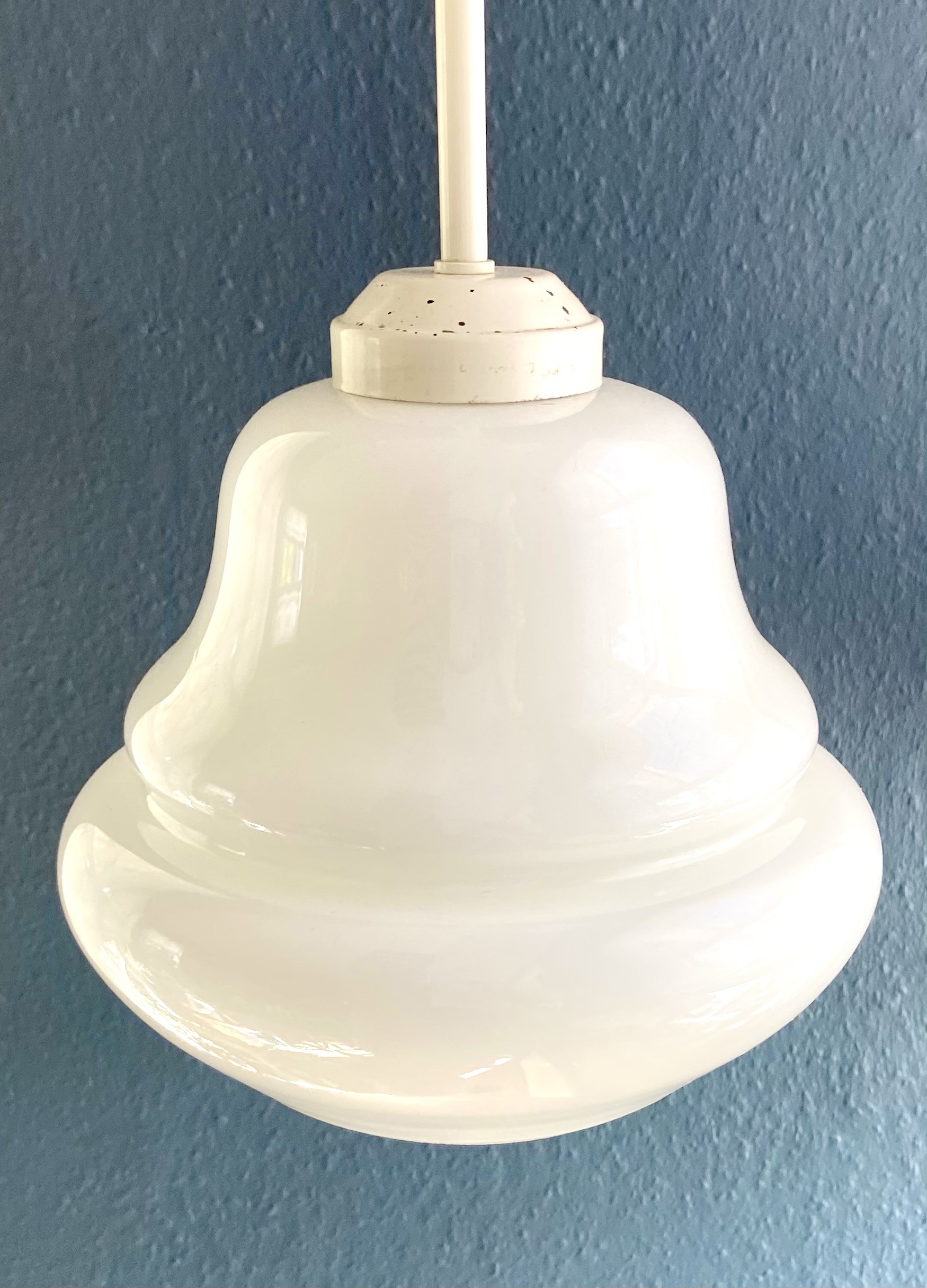 Gammel Køkkenlampe - Opalglas Pendel - Hvid - 19 cm.
