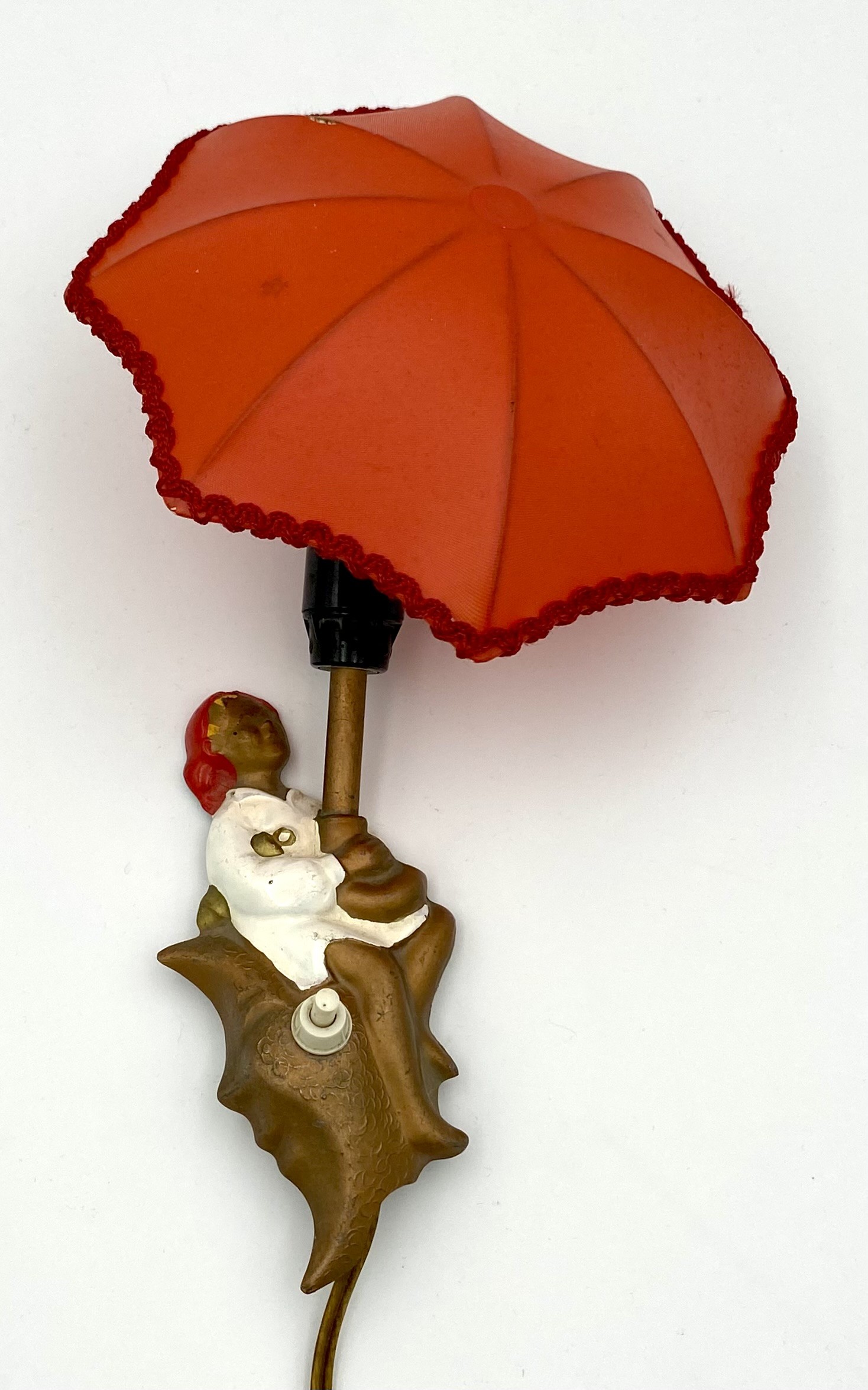 "Ole Lukøje" natlampe/sengelampe med rød skærm fra OLUK. Lampen er produceret i perioden 1950'erne - 1960'erne.