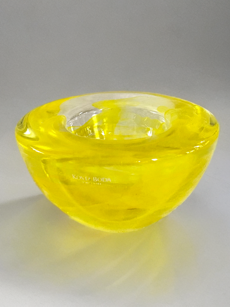 Kosta Boda Atoll Fyrfadsstage - Gult Glas - 11 cm.